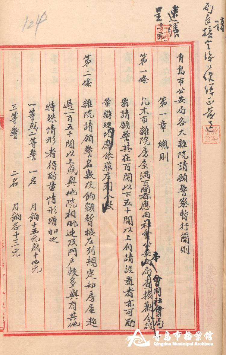 青岛市公安局大杂院请愿警察暂行简则(节选)